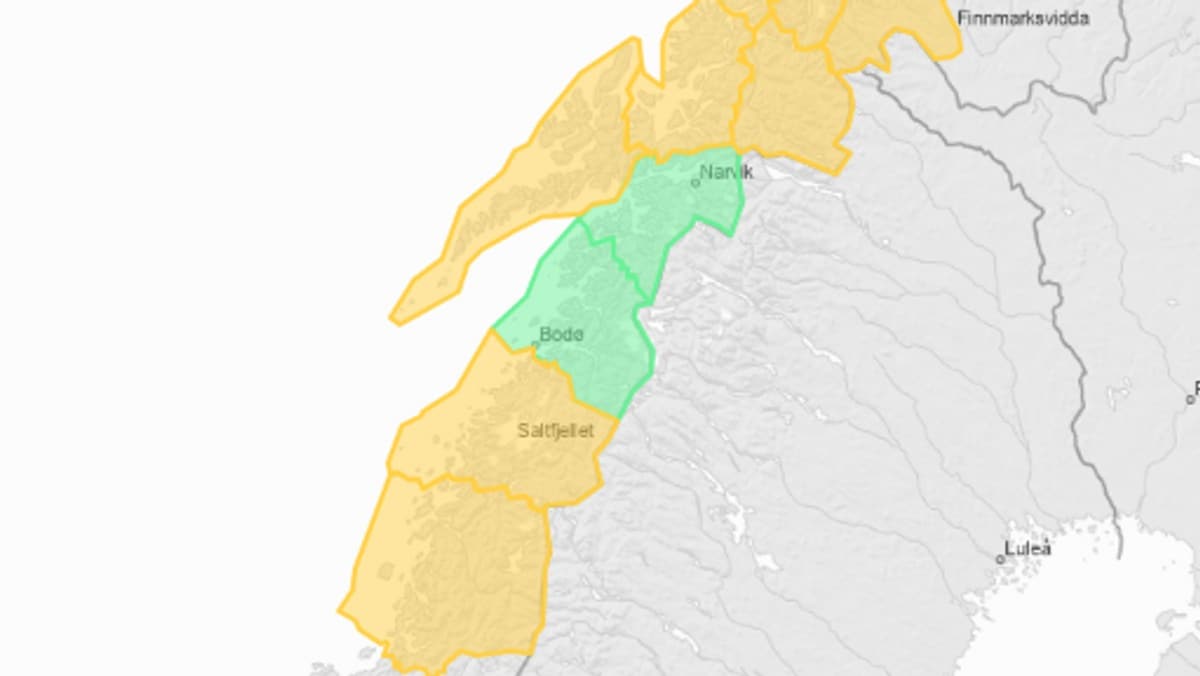 I Nordland er det bare Salten som fortsatt er på grønt nivå for skredfare. Resten av Nordland er på gult nivå.